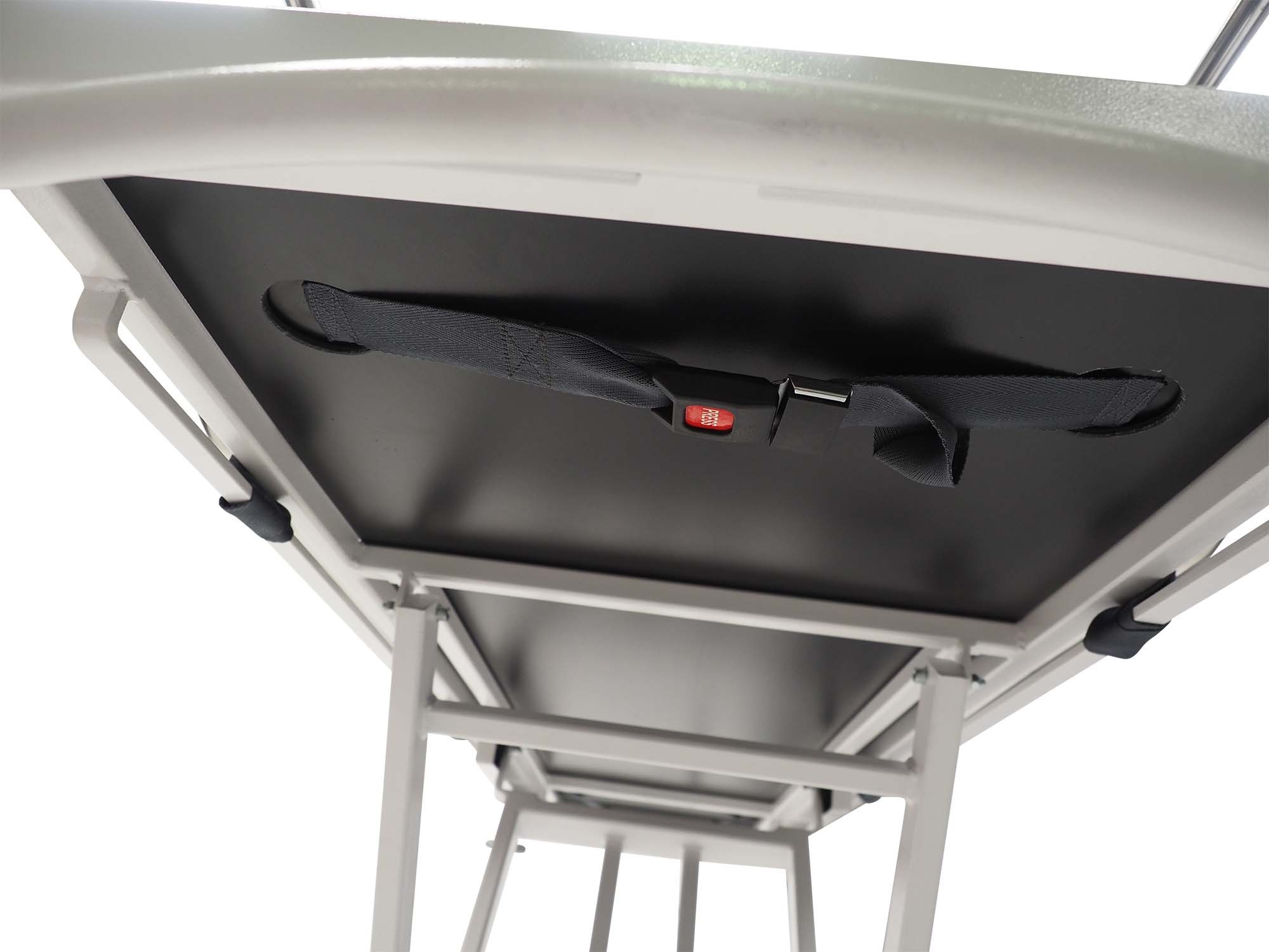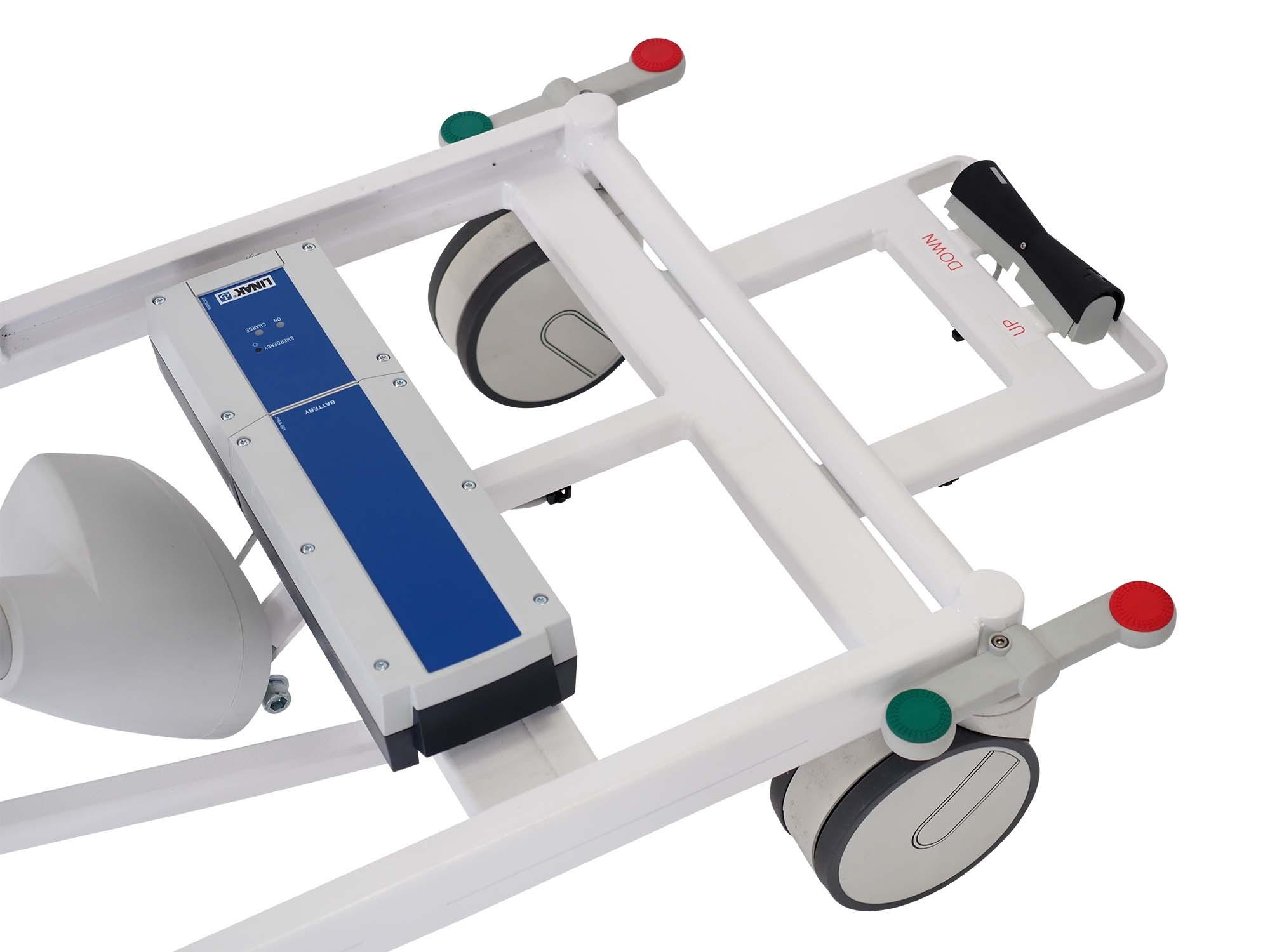 The Concealment Trolley is battery powered and mains chargeable and is controlled from a mounted foot controller.