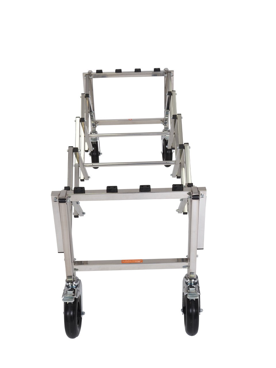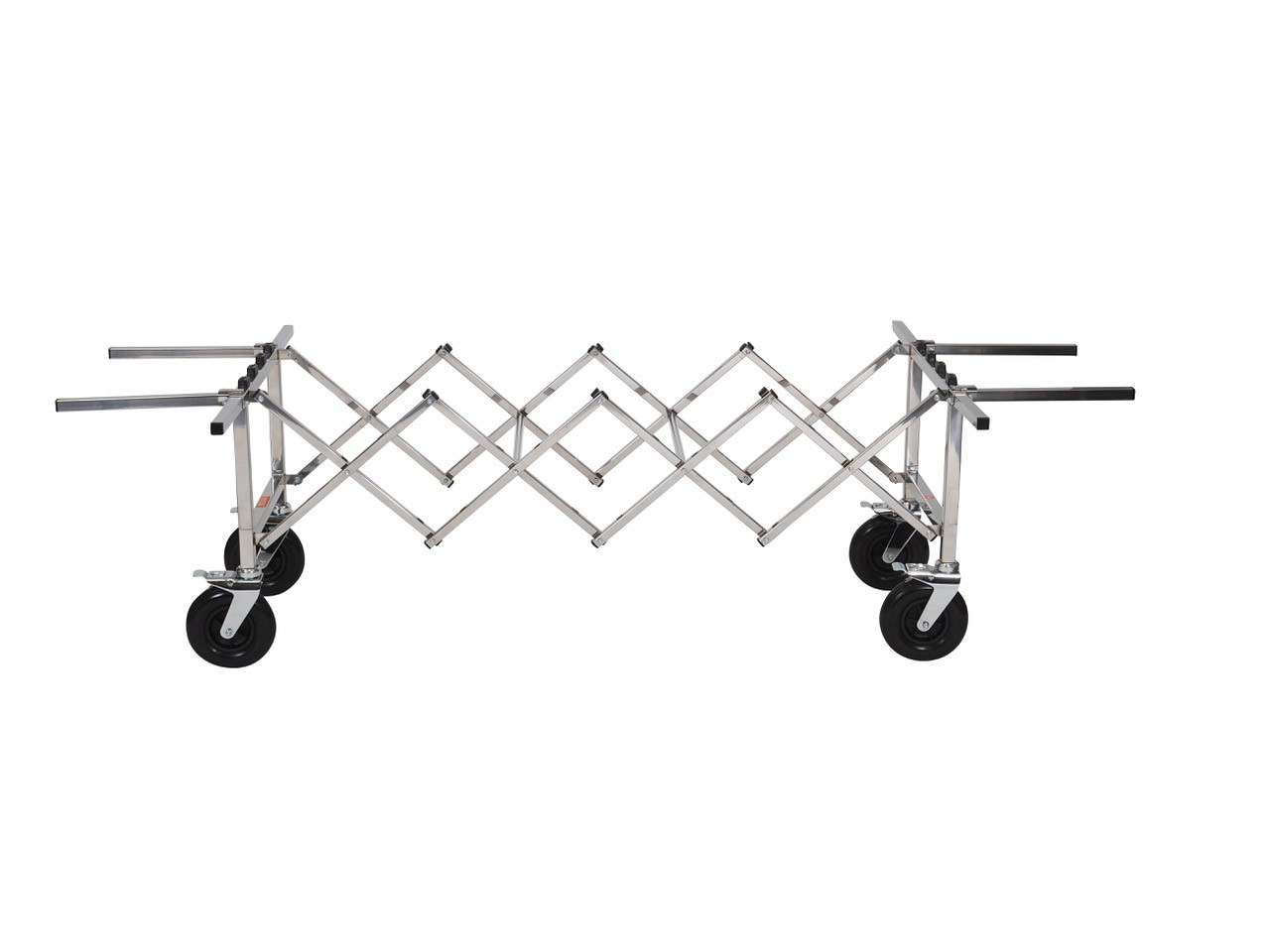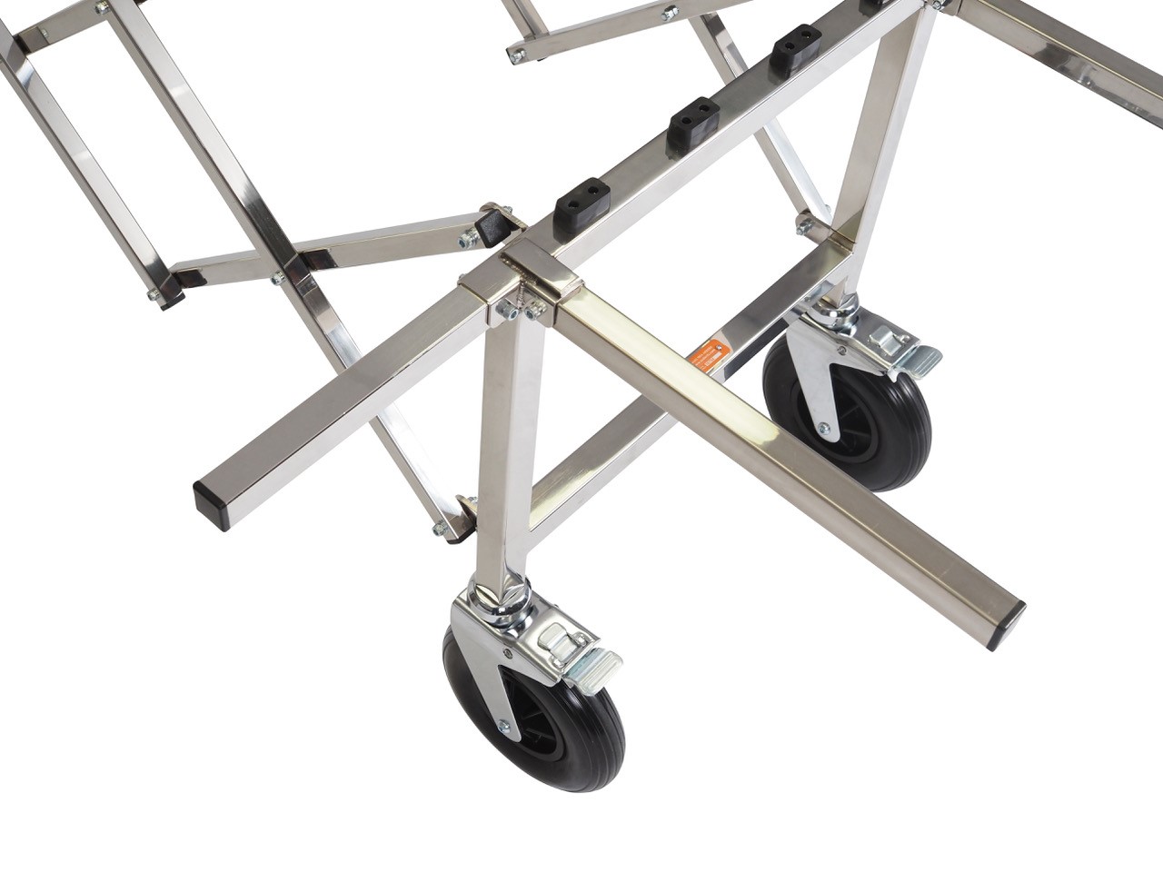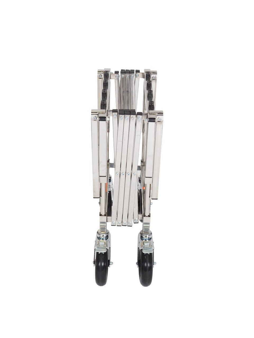 This strong and functional stainless steel bier has been designed to aid with problematic situations where obstacles may need to be overcome. It benefits from having a total of 8 handles to ensure all scenarios are covered. The 4 end handles are longer for use when carrying a large coffin/casket and can be neatly stored away when not in use.
