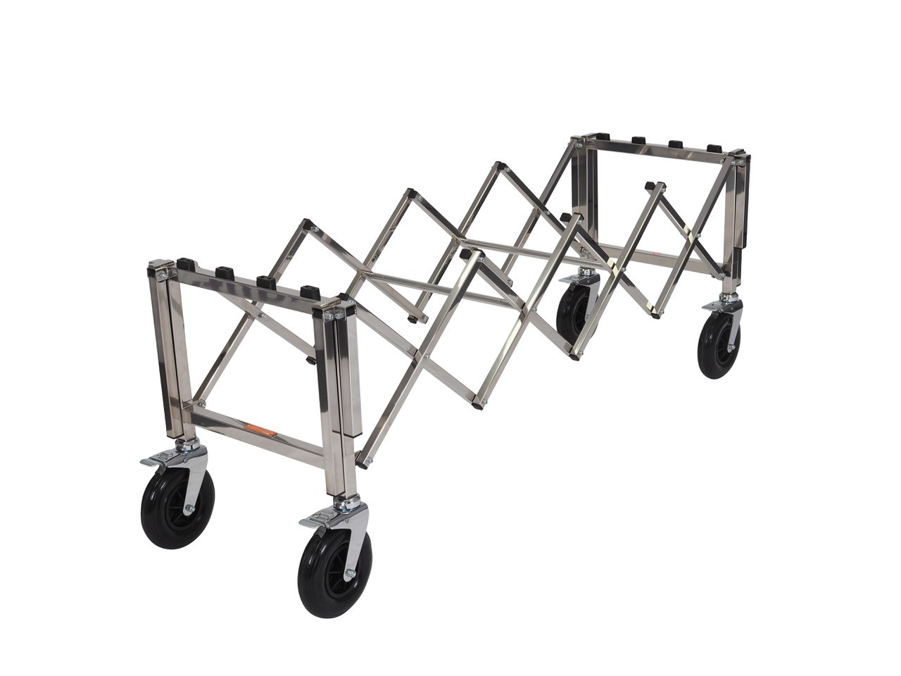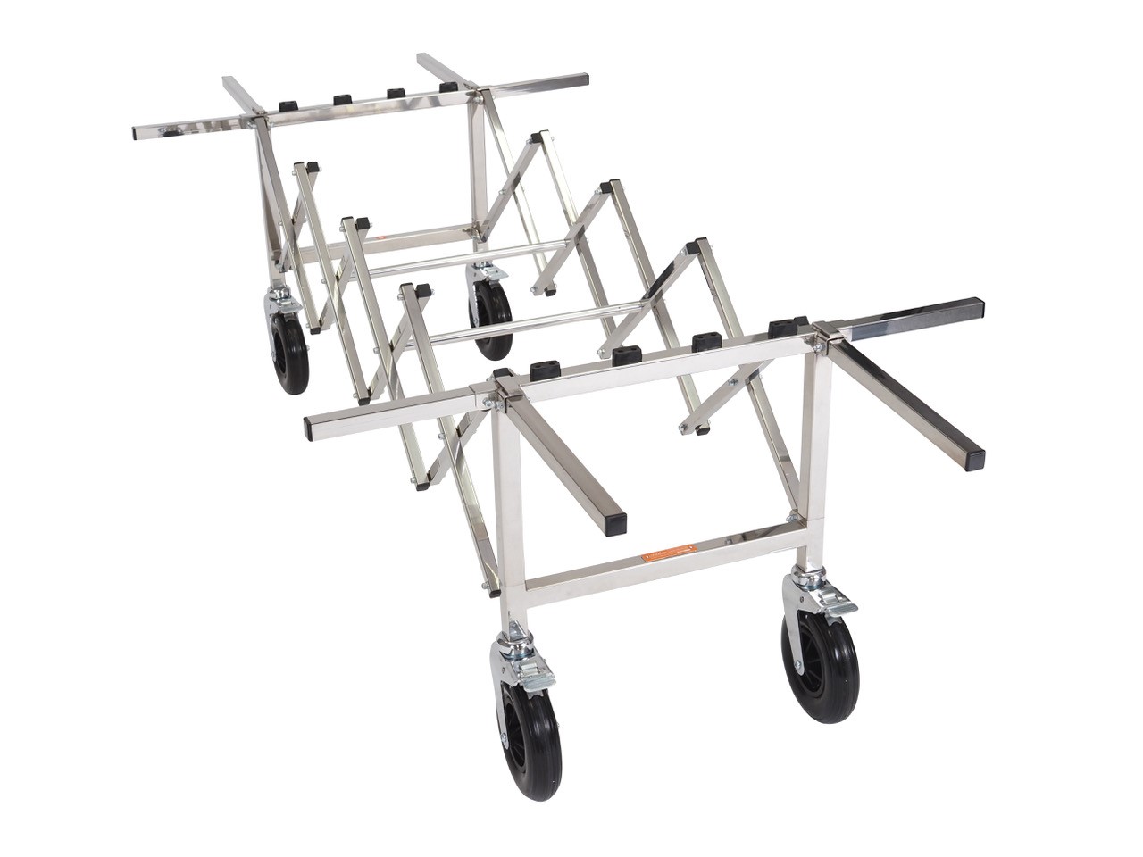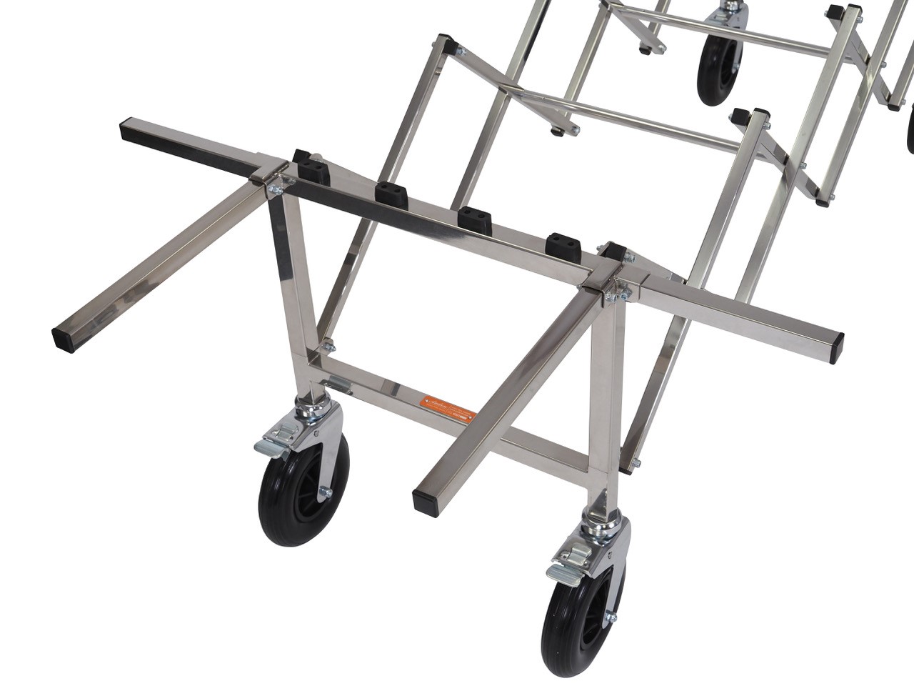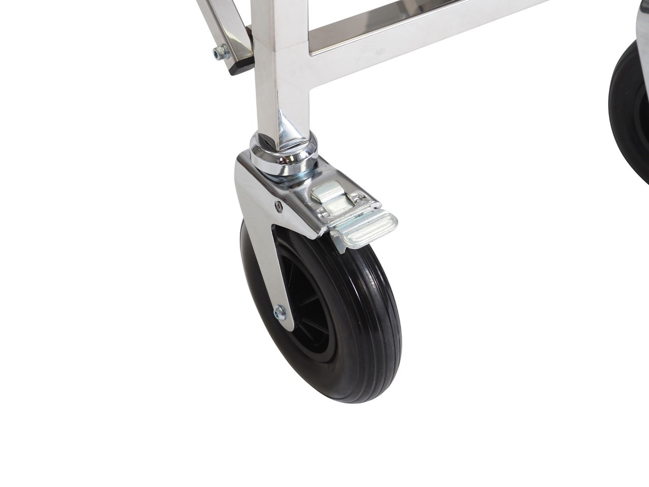 This strong and functional stainless steel bier has been designed to aid with problematic situations where obstacles may need to be overcome. It benefits from having a total of 8 handles to ensure all scenarios are covered. The 4 end handles are longer for use when carrying a large coffin/casket and can be neatly stored away when not in use.